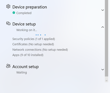 Good morning, We are running into an issue starting Friday where our devices seem to get stuck during the last app installation during white glove. The problem is that when I check the registry, all...