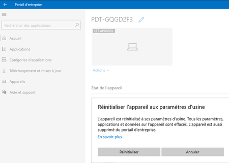Tenant Administration/Customization/Configuration/Hide reset button on corporate Windows devices=Yes