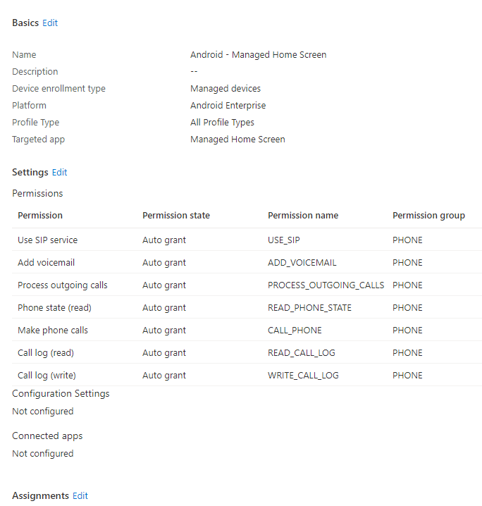 I added the "Phone" permissions to the Managed Home Screen app for the 73054 version. This fixed the problem. I added these permissions with an app configuration for this app in endpoint.- Hilbert HofsteengeCopper Contributorwhat do you mean with "phone" permissions? You added the phone app to the home screen grid layout?