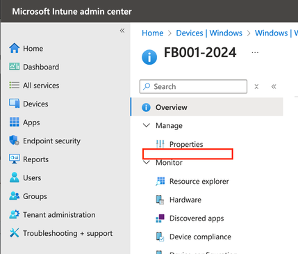 Under device > (specific device) > Manage, I expect to see a whole menu like "local administrator password recovery".