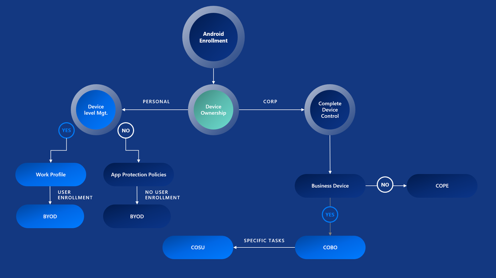 #MicrosoftIntune #MobileDeviceManagement #AndroidEnrollment #TechInnovation #Apple #ios #android #decisiontree #microsoft #intune #COPE #COSU #COBO #BYOD #Appprotectionpolicy #Workprofile #devices #design #environment