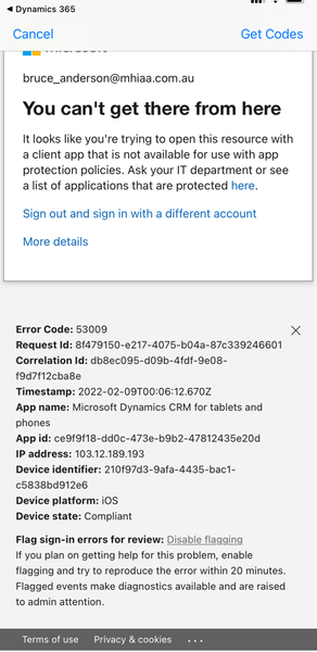 Unable to log into Dynamics 365 for Phones due to App Protectin Policy Error