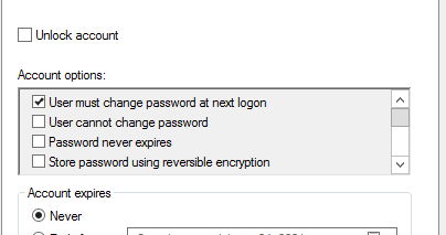 As you requested I check the setting for ForcePasswordChangeOnLogOn, its set to false. After doing a little research, setting this attribute to True should resolve my issue. I submitted a change request to set this attribute to True. Once the change is made and if it resolve my issue or not I'll post the results.