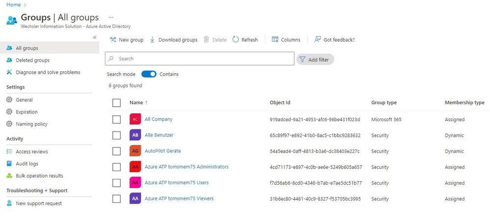 Now let's check all the groups from Azure Active Directory.