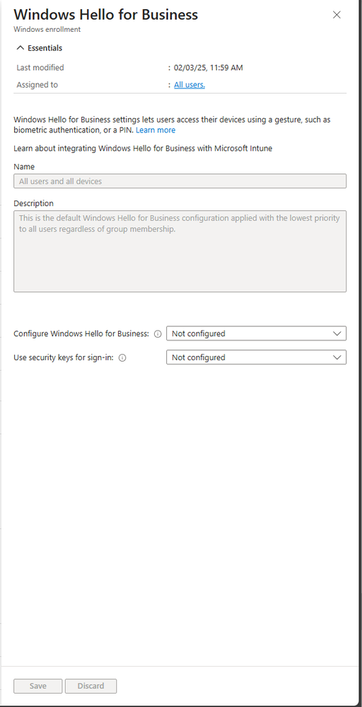 What I can see is, that in Itune WHfB is not configured at all. Checked in the Win10(24H2) baseline and Under enrollment.So I decided to disable setting "MDM weins over GP" in seperate policy. Lets wait and see what happens.