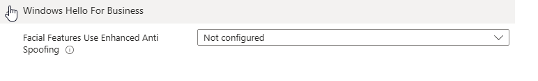 Check specifically under Windows Hello for Business Settings > Facial Features > Use enhanced anti-spoofing. This is the primary WHfB-related setting in the baseline; investigate how this option interacts with your GPO deployment.