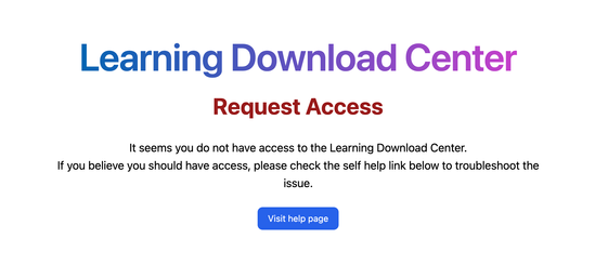 I am unable to access the Learning Download Center. I would like to request access through the MSLE portal; however, the help link appears to be unavailable, which prevents me from reporting or resolving this issue.