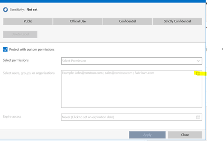 https://docs.microsoft.com/en-us/azure/information-protection/known-issues It comes under Object Model Class, 4th issue down.