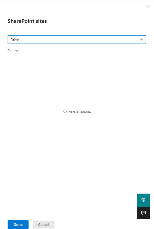 When the wizard shows 'No Data' we have to copy the entire site URL into the box and press enter. This will then populate the required site (https://tenantname.sharepoint.com/sites/sitename)