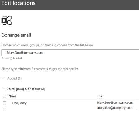 Hi, When I'm performing eDiscovery searches I'm selecting the location for the search. But when I'm searching the user, the results looks like following: What is the second line on the sea...