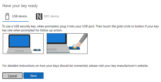 FIDO2 Key - Error add a new way to sign in or verify