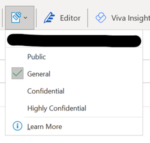 Hi, We have 4 basic labels published: - Public - General - Confidential - Highly Confidential When we set any Outlook email to the 'General' label, it does not appear at the top of the email...