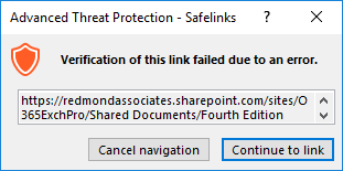 ATP Safe Links has shown up in my Office apps. So far the experience has been rather poor. A lot of timeouts, and some oddities such as links opening twice (i.e. two browser tabs) after only one clic...