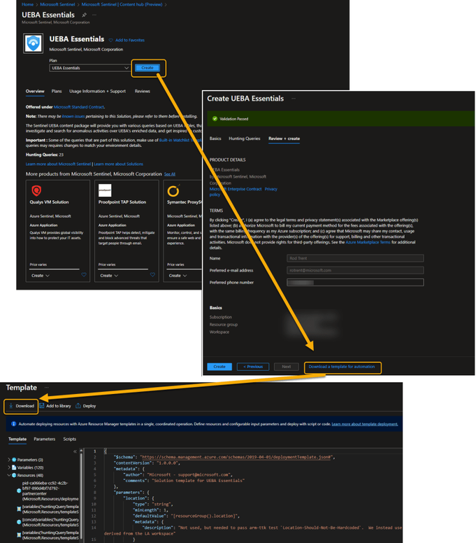 If you need the deployment (ARM) template for any Microsoft Sentinel Solution, there’s an easy in the UI to way to obtain it. The ARM template will allow you to deploy the Solution using your favorite DevOps method.