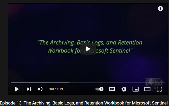 New Video | Episode 13: The Archiving, Basic Logs, and Retention Workbook for Microsoft Sentinel