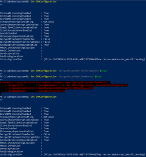 Office 365 Message Encryption: Error setting DecryptAttachmentFromPortal to $true