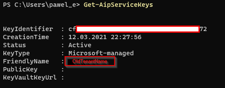 Old Tenant Name visible in Outlook Desktop Client under Protect button