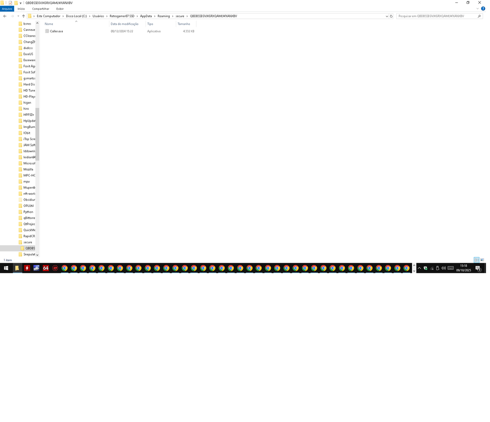 Inside this Secure folder, there's another folder, and inside it, there's the Caller.exe file. If I compress it, Defender says it's Trojan:Win32/Wacatac.C!ml. I removed it, but the full Defender scan didn't detect this EXE as malicious.