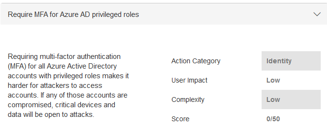 Secure Score - Baseline policy: Require MFA for Admins