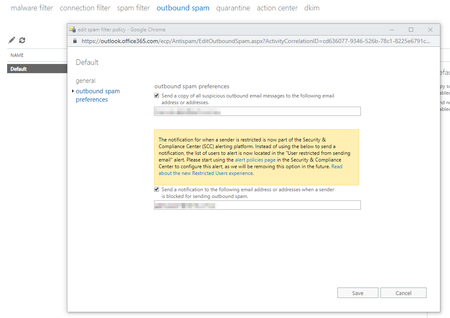 Secure Score - Set outbound spam notifications [Not Scored]