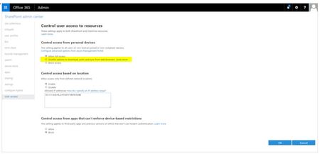 - Oct 05, 2016I believe there is no need of an additional license...this new settings where anounced at Ignite as part of what they call Enhanced conditional access controls, encryption controls and site classification in SharePoint and OneDrive https://blogs.office.com/2016/09/26/enhanced-conditional-access-controls-encryption-controls-and-site-classification-in-sharepoint-and-onedrive/ The EMS requirement is there but for Conditional access based on device state