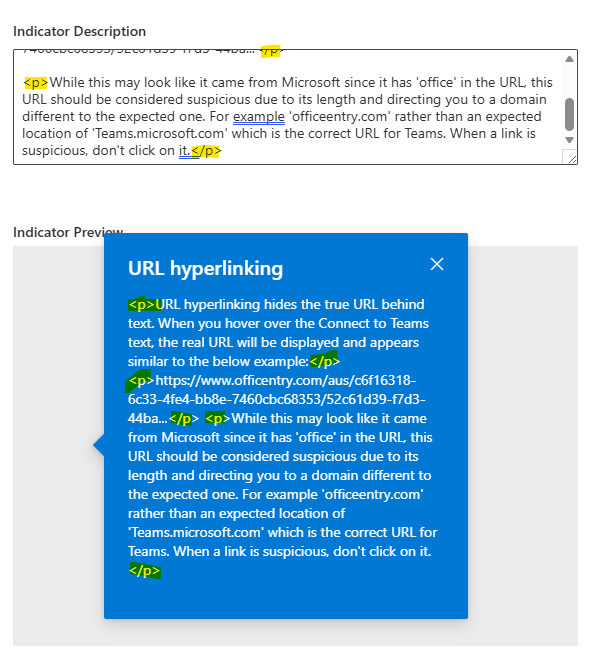 You’re seeing this because the Defender simulation editor renders the content as HTML.