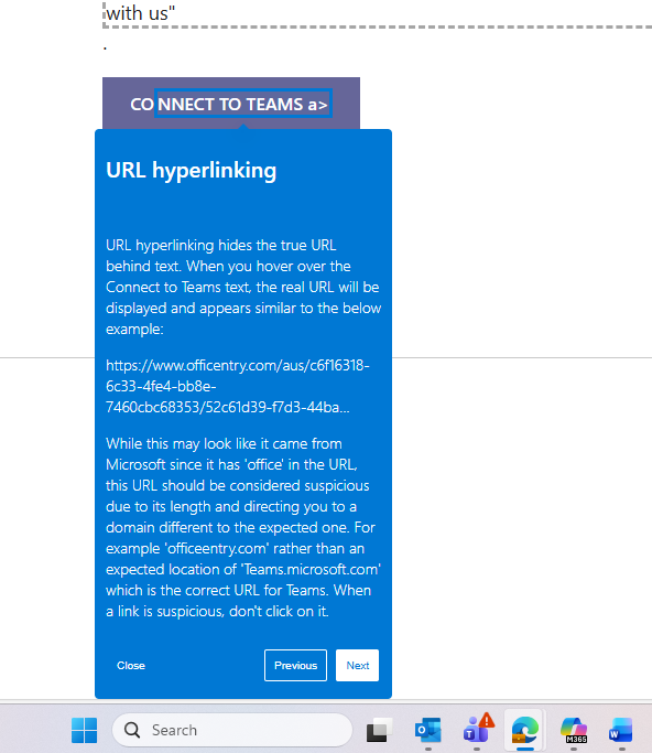 URL Hyperlinking phishing training