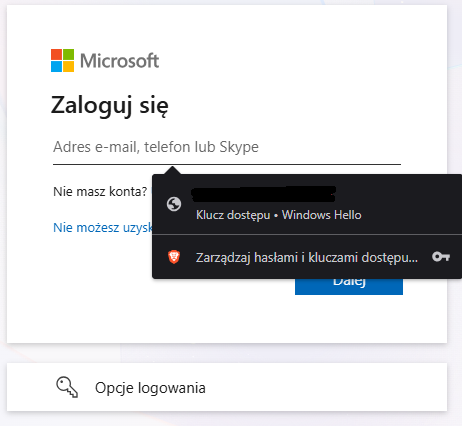 When I attempt to sign in on office.com, Windows Hello automatically triggers a dialog offering authentication via passkeys, even though: