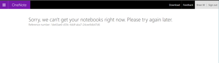 When I navigate to onenote.com or use my Windows 10 "OneNote" app, I get an error that prevents me from opening my notebooks. OneNote.com and OneNote App Let me know if there is a...