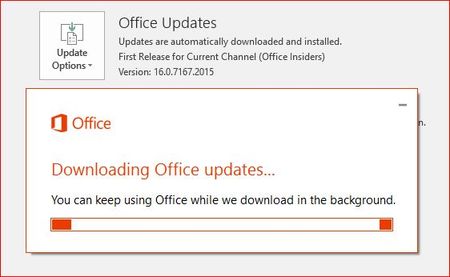 OfficeProPlus - "Update now" is always on for build 16.0.7167.2015
