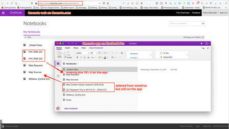 I'm a new Onenote user trying to get Onenote on my MacBook Pro to sync with Onenote web on onenote.com. I'm signed into each on the same Microsoft account. I double-checked. I have notebooks on the w...