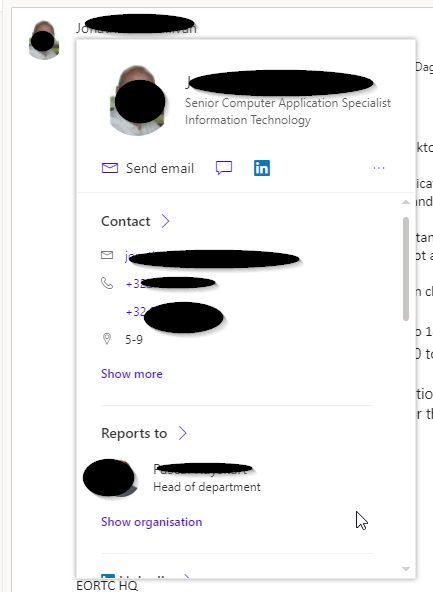 Hi all I've have some issue with the people card in all outlook 365 apps for computer of my company In web version, I have no issue, it's displaying information like the picture, the membership, ev...