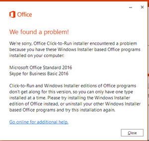 Office Standard 2016 (MSI) and Visio for Office 365 (2016 - Click-to-Run) won't coexist unfortunately this is a known, frustrating, issue as you have discovered: