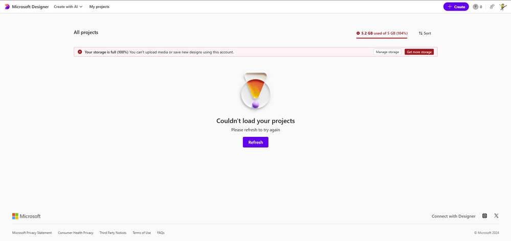 I have generated to much images, so my OneDrive is full. I cannot find the images in OneDrive, but it tells me, that Designer takes 99% of my storage. I tried to delete the images, but designer can't load any of them.