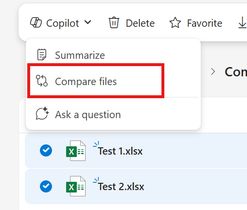 Then just open Copilot from there and select Compare files: