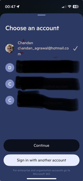 Hi, I have installed copilot on iphone. While logging in using the 'Microsoft Account', it shows me 4 accounts. One of them is my personal account and two are my office accounts. But then it sho...