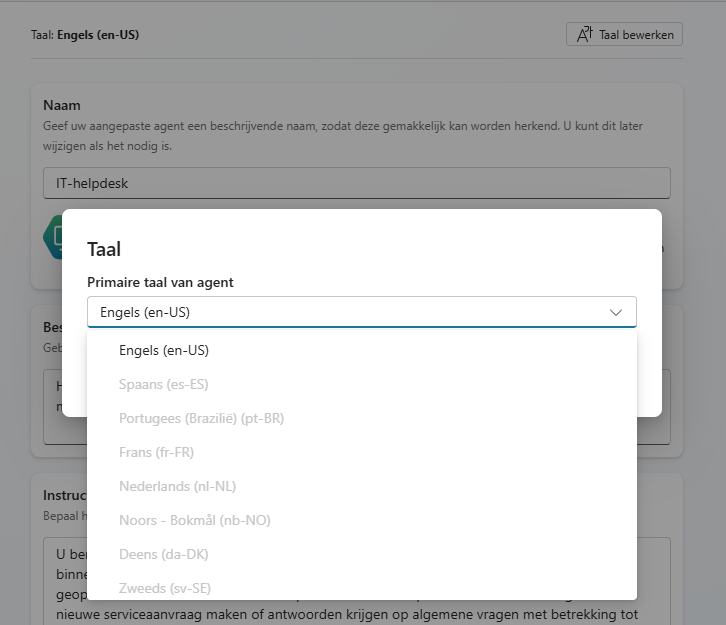 Copilot Studio: Can't change primary language when creating agent
