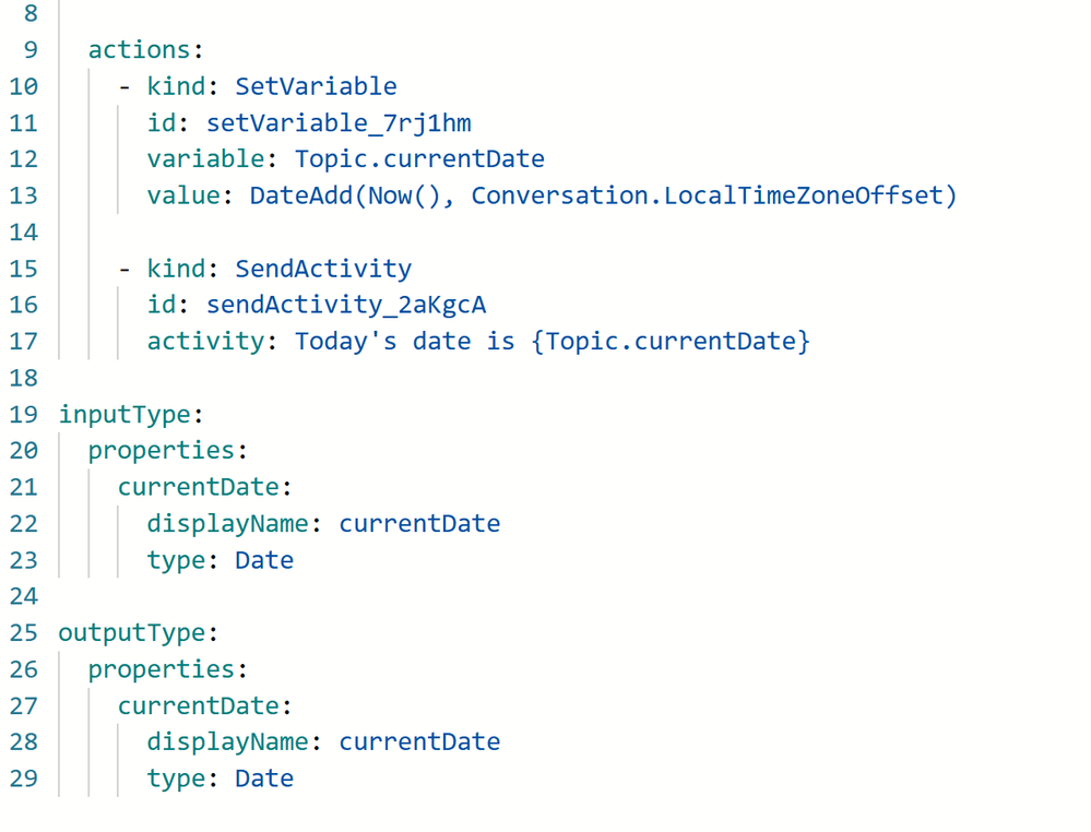 - ffcloud1265Copper ContributorAlso stumbled across this one. The model itself does not seem to be aware of the date. However, you can build a topic and tell copilot the date in the generative answers node prompt by using the Today() function.