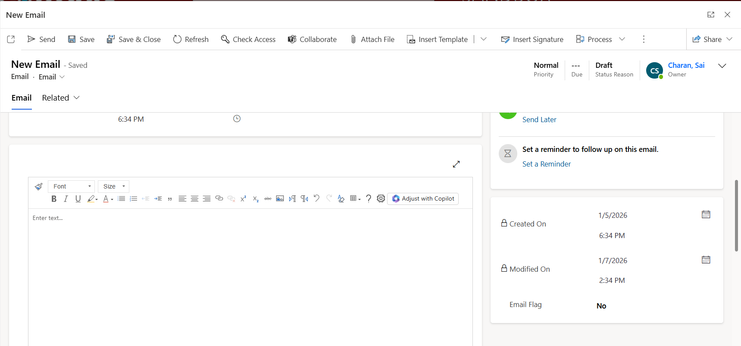 Hi everyone, could anyone help me out how to add "Draft with Copilot" option in Sales Hub Email. I have enabled the copilot features in the environment and also enabled Contextual email drafting with AI in the application settings. In my personal tenant account that is working fine, but not here. How do I get that Draft with Copilot option / Modern version of drafting emails?