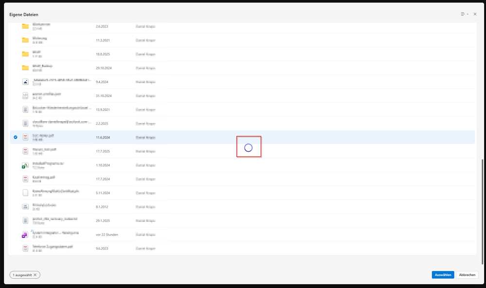 and then select OneDrive, the spinner appears and won't go away. When I select a file and want to select it then nothing happens. I also cannot close the pop-up through the "X" or "Cancel" button.
