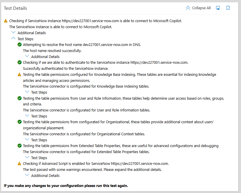 The tool will automatically validate connectivity, verify credentials, check table-level permissions, provide a clear step-by-step summary of results, and recommend next steps if any issues are found as shown below: