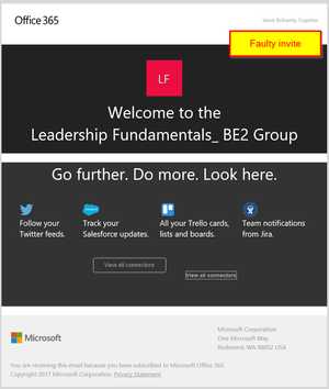 - Pieter Op De BeéckDec 03, 2017Iron ContributorHi Juan Carlos, thank you for your reaction. All impacted users are internal users with a E1 license. Some groups have external users added, but external users receive a totally different email - as expected (especially since they are being invited through Azure B2B).