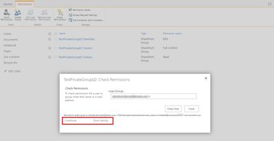 - Nevertheless, the external users is not listed in the Permissions page (user.aspx). But, if I check permissions (in user.aspx) he is regularly reported as being given directly contribute permissions (see attached screenshot).
