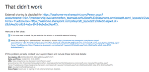 But she may mean her round picture in the preview of members. As this user was already signed in (even worse her company uses the Microsoft Online Services Sign-In Assistant ) to her other tenant, then they see thier round picture. I tried that and got errors from Delve - previously I suspect no one had used Delve on the tenant and it was not setup. Anyway that doesn't work either: