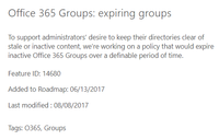 Office 365 groups expiry now available for AAD Premium customers.