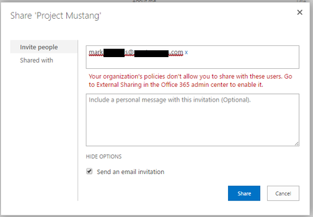 - Jun 01, 2017Do you get the same issue when you are in a Group in outlook on the web and try sharing to an external user from there?