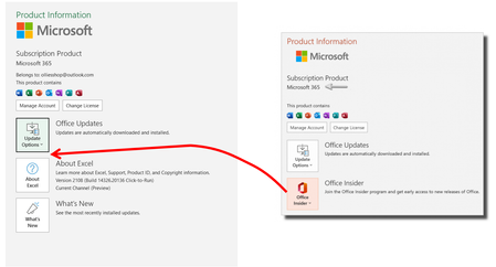 I figured it out. I actually have Office Insider, it just doesn't show up with the "Office Insider" box. Instead it shows Current Channel is (Preview). BTW, the reason I brought this up is I haven't been able to find some of the new features highlighted in the update emails, like the Navigation Panel in Excel. So it must be buried somewhere.
