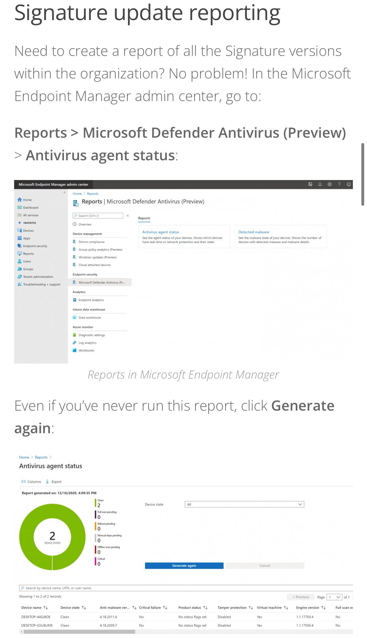 Does anyone know how to pull data on the "security intelligence" version installed on devices from Microsoft Defender Console /or from Intune?