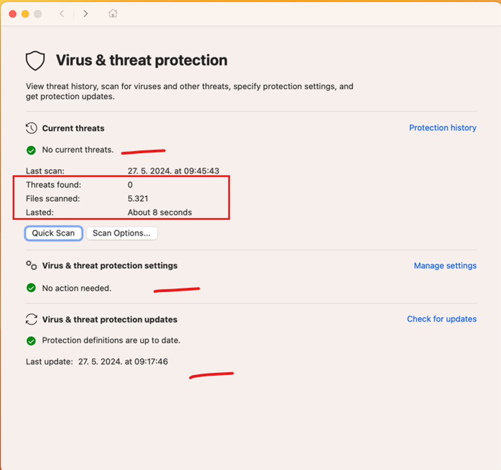 However, we noticed when user run quick or full scan that action takes 1 second and that is it - 0 files scanned.