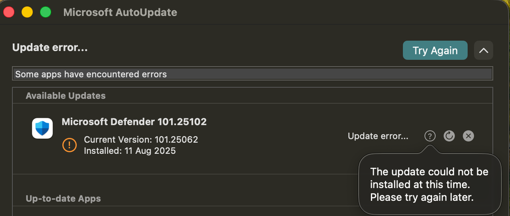 I have been trying to update MS Defender for several days now and without luck. I am on a iMac M3 with macOS 26.1.